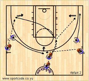 Σημεία έμφασης: Τεχνική εκμετάλλευσης της κίνησης "give and go". Παραλλαγές: κατάληξη με διάφορα είδη σουτ κλπ.